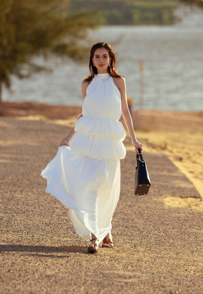 Diễn viên Khánh My tái xuất làng thời trang sau thời gian “ở ẩn”. Cô mang tới năng lượng tươi vui, như dạo chơi giữa thiên nhiên thơ mộng.